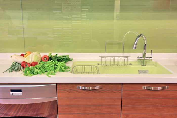 シンクと人工大理石カウンターにはシームレスで、平坦かつ滑らかで、すっきりとした手触りです。細菌及び雑菌の繁殖を防ぎ、ご家庭の健康を守ります。 | ![]() |