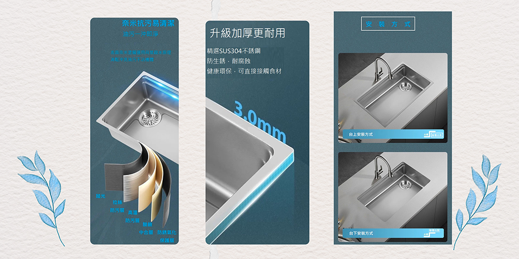 製品 キッチンシンク 洗面ボウル 疎水性ナノシンクシリーズ ステンレス水栓 付属品 優れた特徴&機能性 防汚テスト 材質破壞試驗 GO!実際に体験 スタイリッシュな衝撃吸収シンクマット 疎水性ナノシンクシリーズ / 製品 > 疎水性ナノシンクシリーズ
